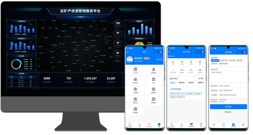 大屏呈現單量、區域、設備、人員等多維度數據分析,生成統計報表